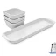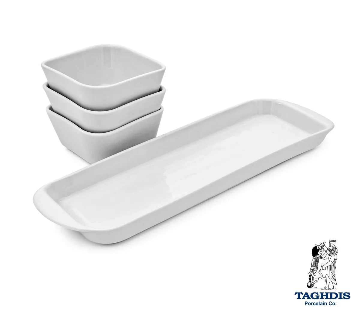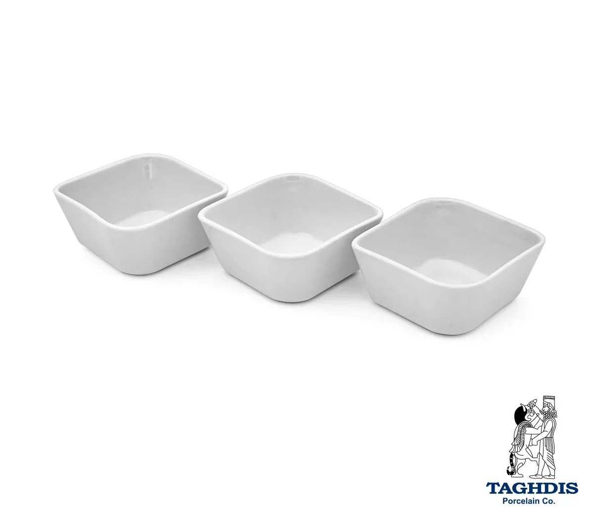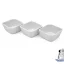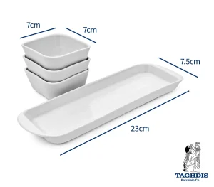 پیاله ها و سینی در قالب مربع با گوشه های گرد طراحی شده اند.